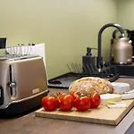 Voll ausgestattete Küchenzeile mit einem Herd und einem Geschirrspüler ist in diesen Apartments verfügbar.